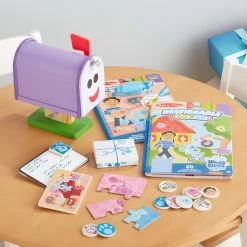 With this 27-piece play set, it’s always Mail Time! Personalize the Blue’s Clues & You! Mailbox, letters, and envelope with reusable stickers. Use wooden stamps with self-stick tabs to mail a wooden postcard, reusable invitations, and shipping pouch. A double-sided puzzle or wooden pieces for a matching game fit into a gift box that can be mailed in the pouch! Kids four and older will love playing mail carrier, pretending to send and receive mail, and exploring imaginative play whenever it’s Mail Time! Blue’s Clues & You! promotes kindergarten-readiness, inspiring confidence, empowerment, and kindness in preschoolers as they develop their problem-solving, social, and developmental skills through play.
