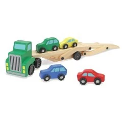 This wooden Car Carrier has a big job to do: delivering four colorful cars to their new homes! The Melissa & Doug wooden truck features an easy-fold ramp with an upper and lower level. Kids can extend the lower level, and drive their cars up onto the ramp, then lift it up to hold two of the cars when it’s time to roll out. Kids can sort and sequence the wooden cars by color to inspire playful counting, and sequencing activities. Car- and truck-loving kids will love discovering endless play possibilities as they roll this wooden truck toy all around the house and to the ends of their imaginations. The tough vehicles have sturdy wooden chassis and smooth-rolling wheels, so they’ll stand up to countless deliveries and road trips. And maneuvering the ramp is easy to do, great for fine motor skills and hand-eye coordination, and so much fun! Designed to engage playful preschoolers and young children, and constructed with care to withstand their harshest treatment, this play set is made of durable, child-safe materials and is safety-tested to our most rigorous standards. It makes a great gift for preschoolers and kids ages three and older for hands-on, screen-free play.