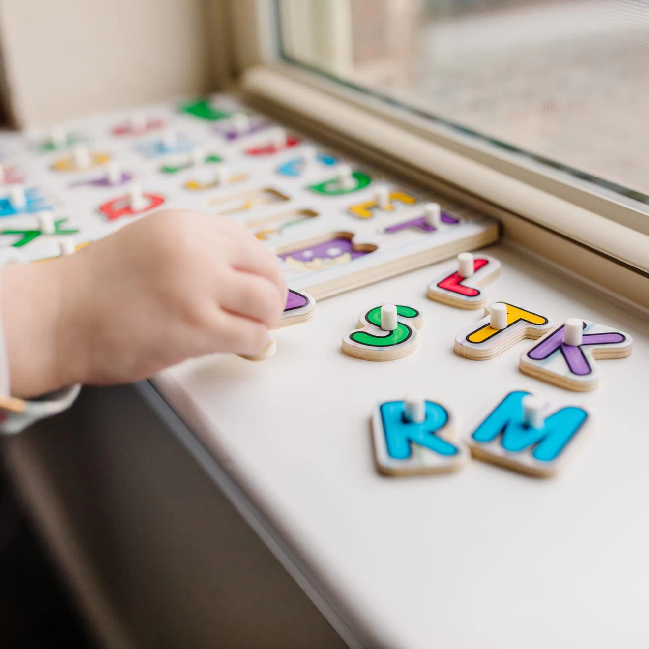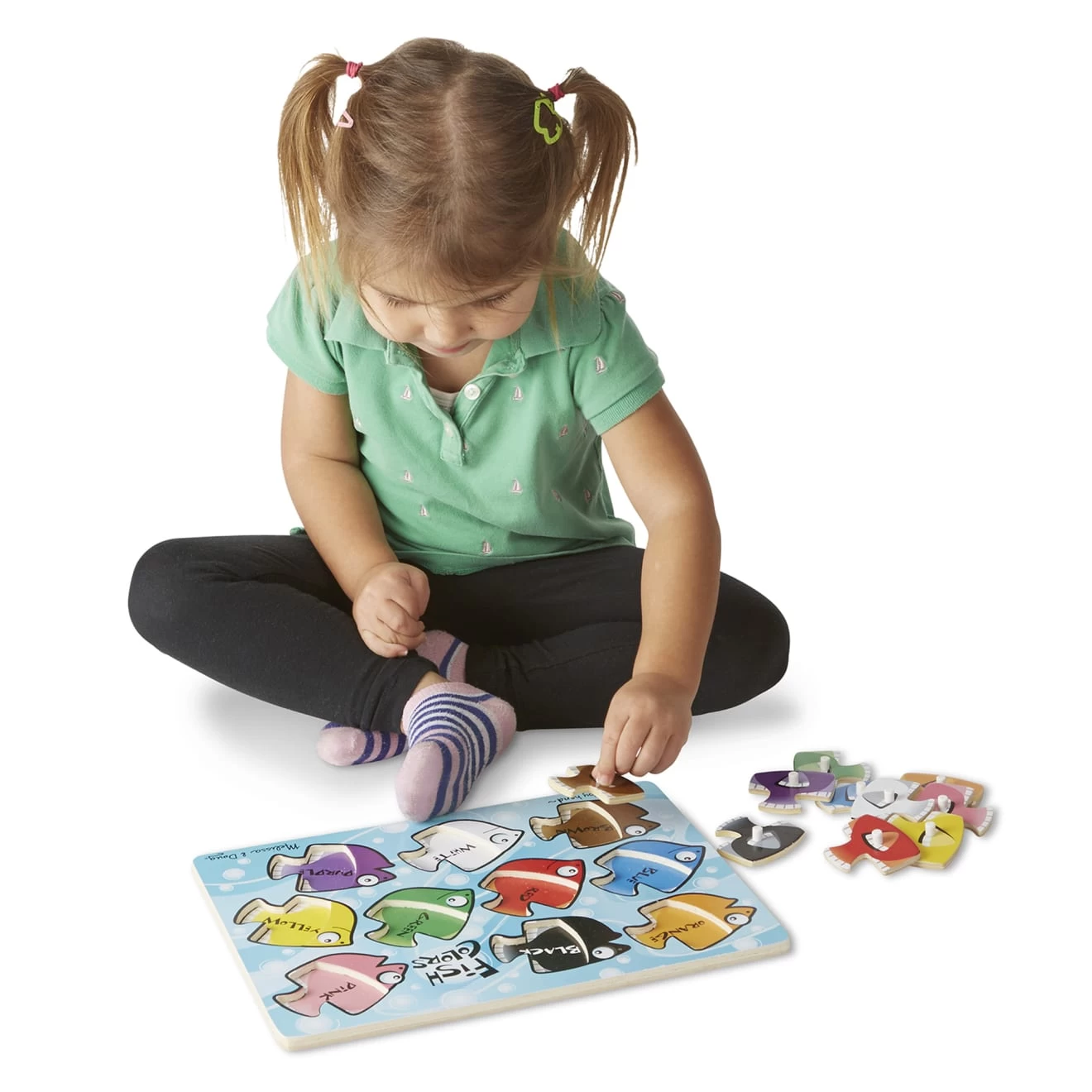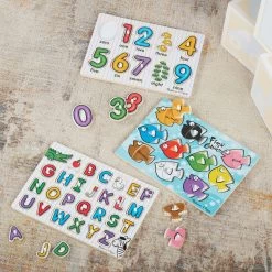 A,B,C . . . 1, 2, 3 . . . what color do you see? Help your child prepare for school with these brightly colored See-Inside Alphabet Peg Puzzle, See-Inside Numbers Peg Puzzle, and Fish Colors Mix ‘n Match Peg. Easy-grasp pegs and pictures under pieces make these three great matching activities ideal fun for learning letters, numbers, and colors and practicing fine motor skills.