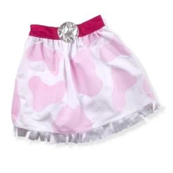 Ready for some cowgirl dress-up? Yeehaw! This set has everything a little cowgirl needs for some wild-west adventures. The role play costume includes a pink and white cow-print skirt with a shiny buckle, a cow-print vest with fringe, a pink satin neck scarf, a cowgirl hat, and a removable sheriff’s badge. The Cowgirl Role Play Set is sized to fit preschoolers ages three to six. The high-quality fabrics and solid construction ensure durability so little ones can wear it over and over again. The outfit can be machine washed, and it comes with accessories that can easily be wiped clean. With authentic cowgirl details, these role-play accessories encourage lots of exciting pretend play for that new sheriff in town! The costume set helps promote narrative thinking and creative expression, along with independent and cooperative play. It makes a great gift for kids ages three to six for hands-on, screen-free play.