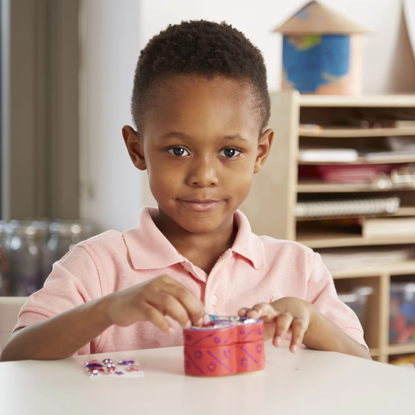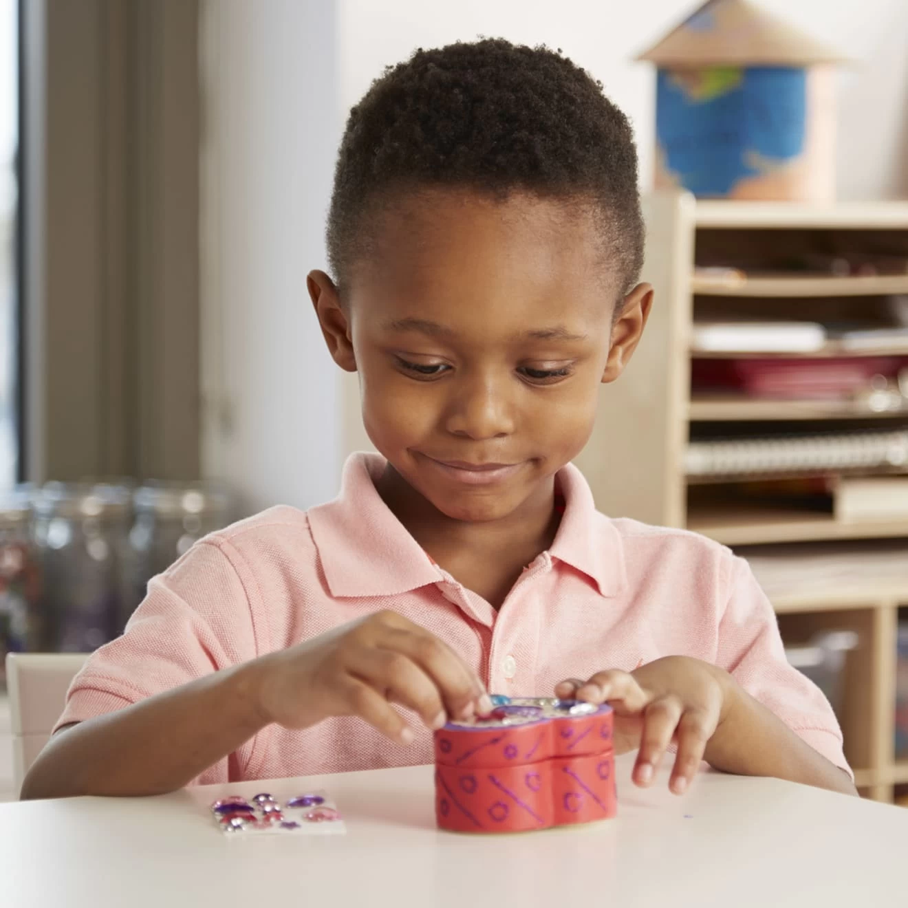Looking for the perfect spot for storing those treasures that are close to your heart? This kit includes a sturdy wooden heart-shaped box (3.1 x 1.4 x 2.9 in.), glitter glue, white glue, colorful gem stickers, 4 pots of paint, and a paintbrush to let you add your own unique personal touches to make an original craft inspired by you and your imagination! A perfect activity for parties or rainy days.