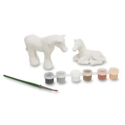 Have fun decorating this tender horse and its foal. This kit includes two ready-to-decorate, solid-resin horse figurines with 6 pots of colorful, non-toxic paint and an easy-clean paintbrush.