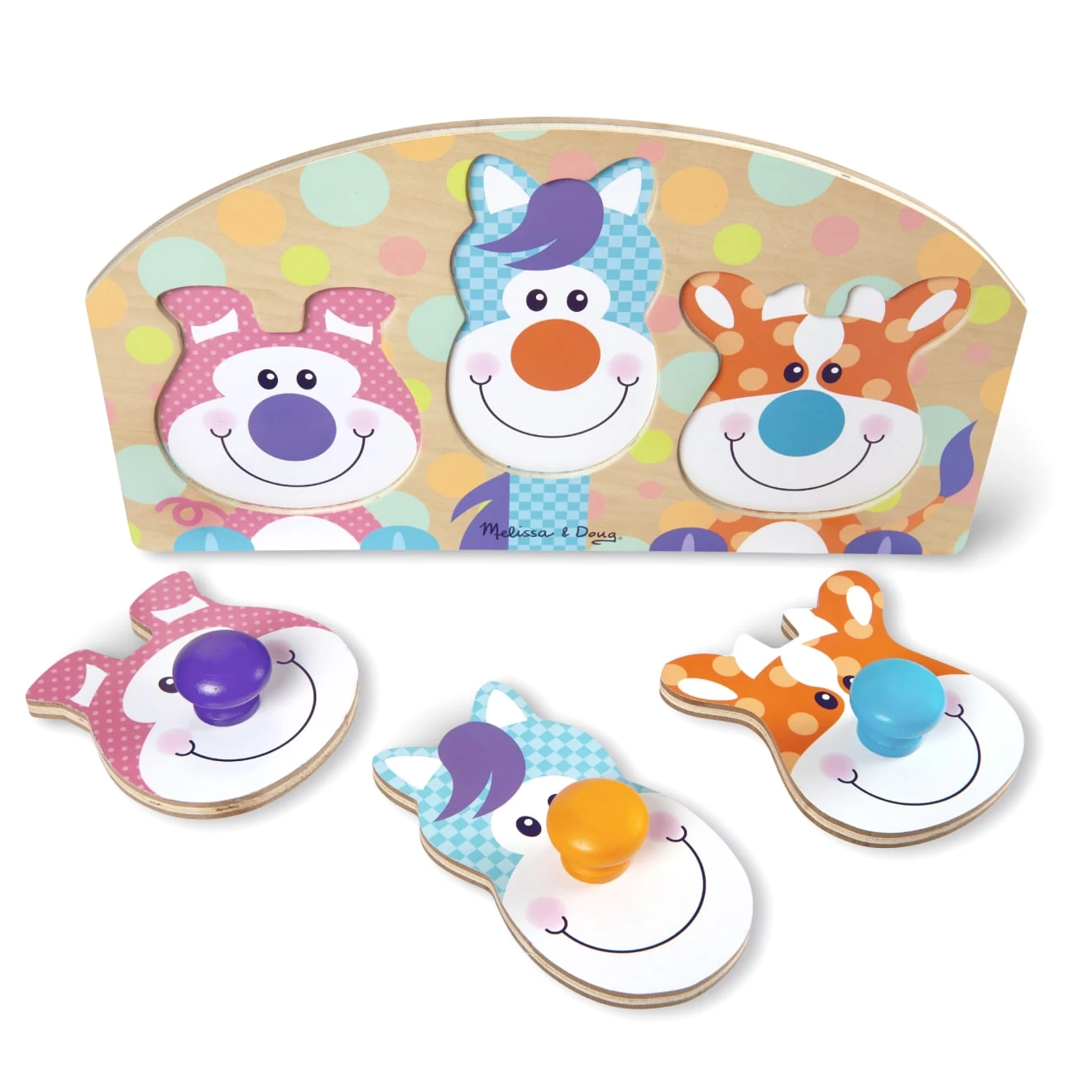 Melissa & Doug First Play Wooden Jumbo Knob Farm Animal Puzzle