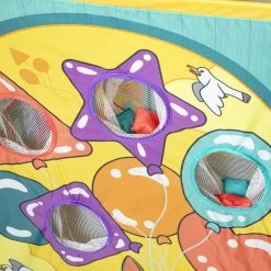 Step right up and turn any day into Fair Day! The sturdy and easy-to-assemble fabric Melissa & Doug Fun at the Fair!™ Game Center Play Tent lets kids three and older sell tickets, play games, win prizes, and more at their very own fair! Role play as the ticket clerk, game operator, or fairgoer. Toss a plush pie at the silly animals in the bakery (pie sticks to hook-and-loop material and stores in an “oven” pocket), catch 6 numbered fish with a wooden rod, toss beanbags into the balloon pockets, and, for a great “photo op,” peek through holes to become part of a seaside scene! Hang a stuffed bear prize and personalize a reusable sign to hang on the ticket booth door. An activity card lets kids keep score and includes pictures to seek and find in the detailed tent artwork. Designed to amuse, surprise, and challenge kids three and older to keep them laughing and learning through play, the Game Center Play Tent is an engaging, hands-on way to introduce numbers and colors, and to encourage fine and gross motor skills. From games of skill and chance to innovative carnival-inspired play sets, the Melissa & Doug Fun at the Fair!™ collection brings home all the fun of a day at the fair!