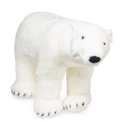 Make chilly days extra cozy with your very own polar bear! The beautiful white plush fur is both durable and incredibly soft to the touch, while the quality construction and a strong interior structure means it will hold up to years of hugs and snuggling. Its impressive size (nearly three feet long and standing 20 inches tall!) and an attention to realistic details–felt claws, padded huge paws, a soft, black nose, and a lovable expression–make this a big bear that’s sure to warm any heart!