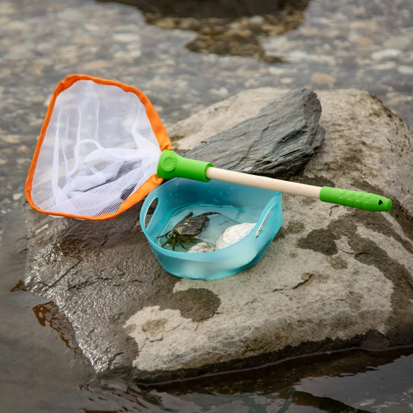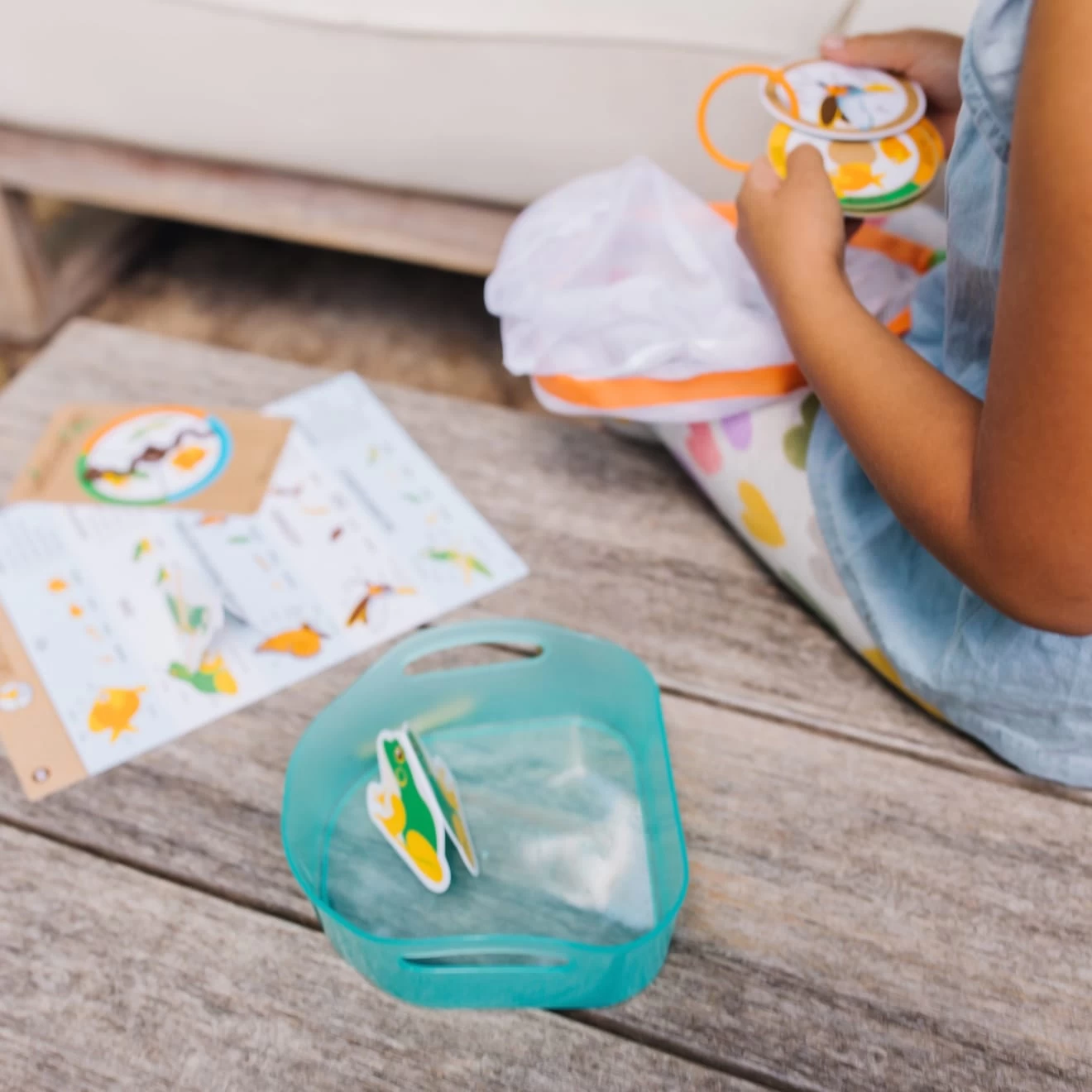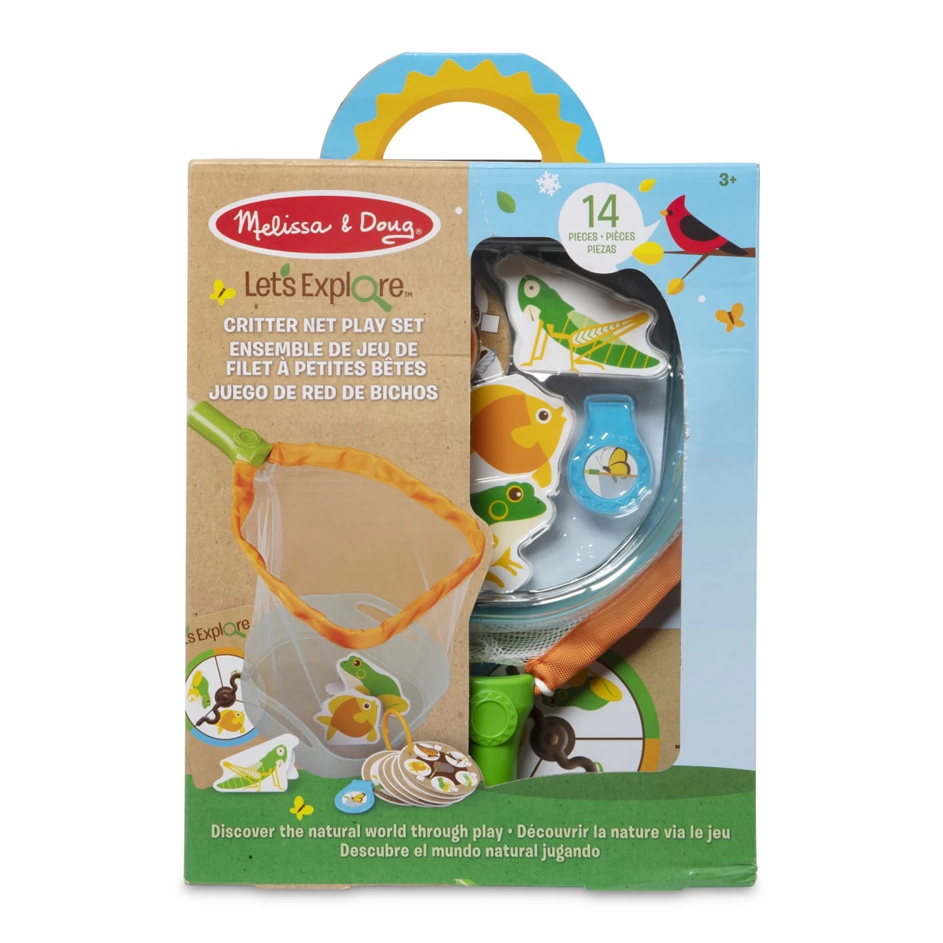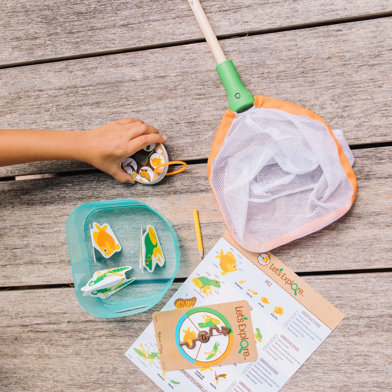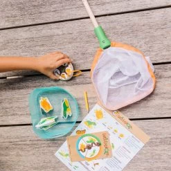 Explore the outdoor experience of catching and observing critters that swim, crawl, and fly, anywhere, anytime! Use the removable tray to see creatures underwater or fit it in the net to scoop them up for up-close observations. Use the net on its own to catch real or imaginary butterflies, grasshoppers, frogs, or fish. Six double-sided identification cards show life cycles and parts of the body for all kinds of critters and clip to the net, so they are always handy. Enhance pretend play with a spinner game and three folded cardstock critters to catch and observe. Let’s Exploreâ„¢ encourages kids three and older to connect with the natural world through imaginative play! Discover the joy of outdoor adventures that instill curiosity and confidence while inspiring kids to say, “Let’s Exploreâ„¢”!