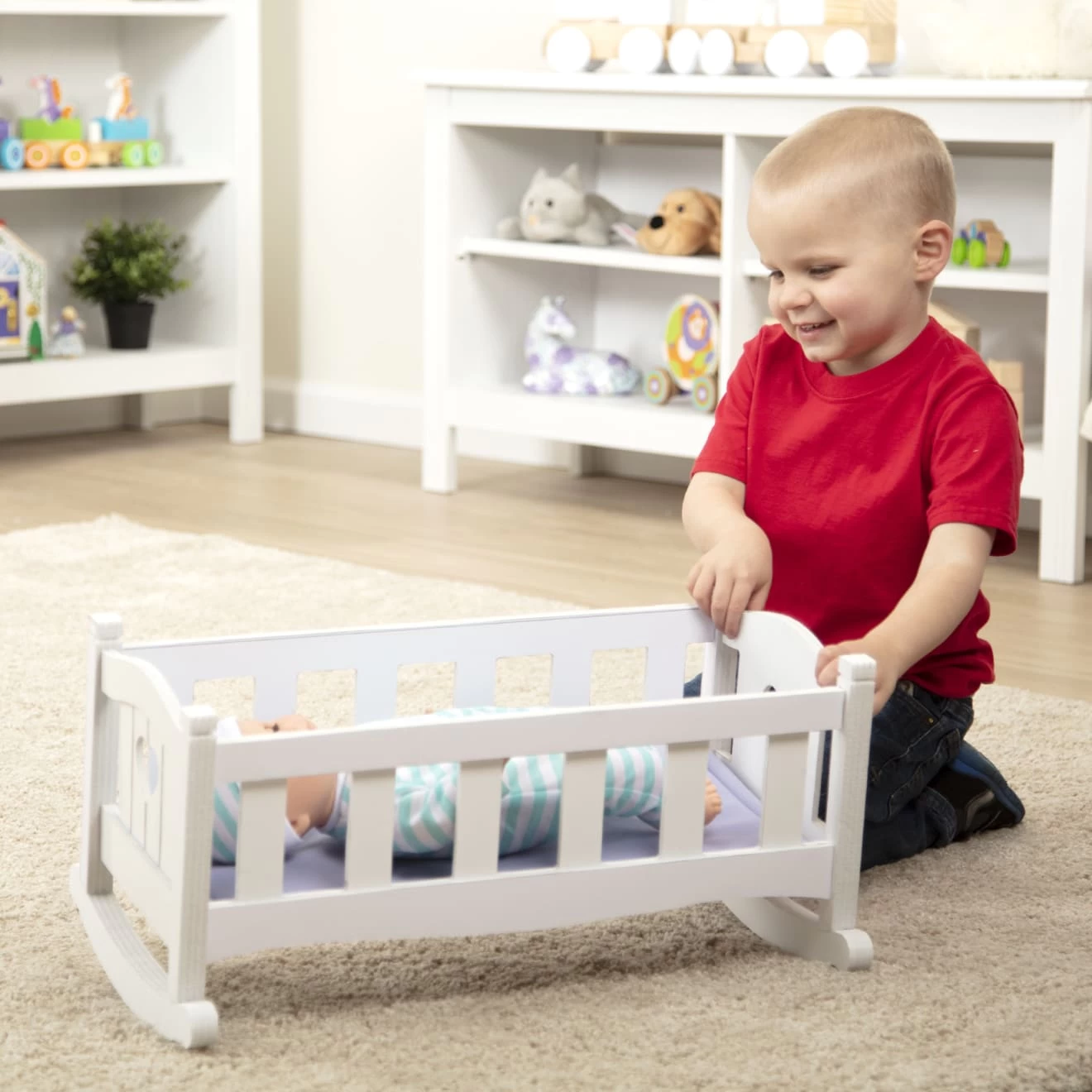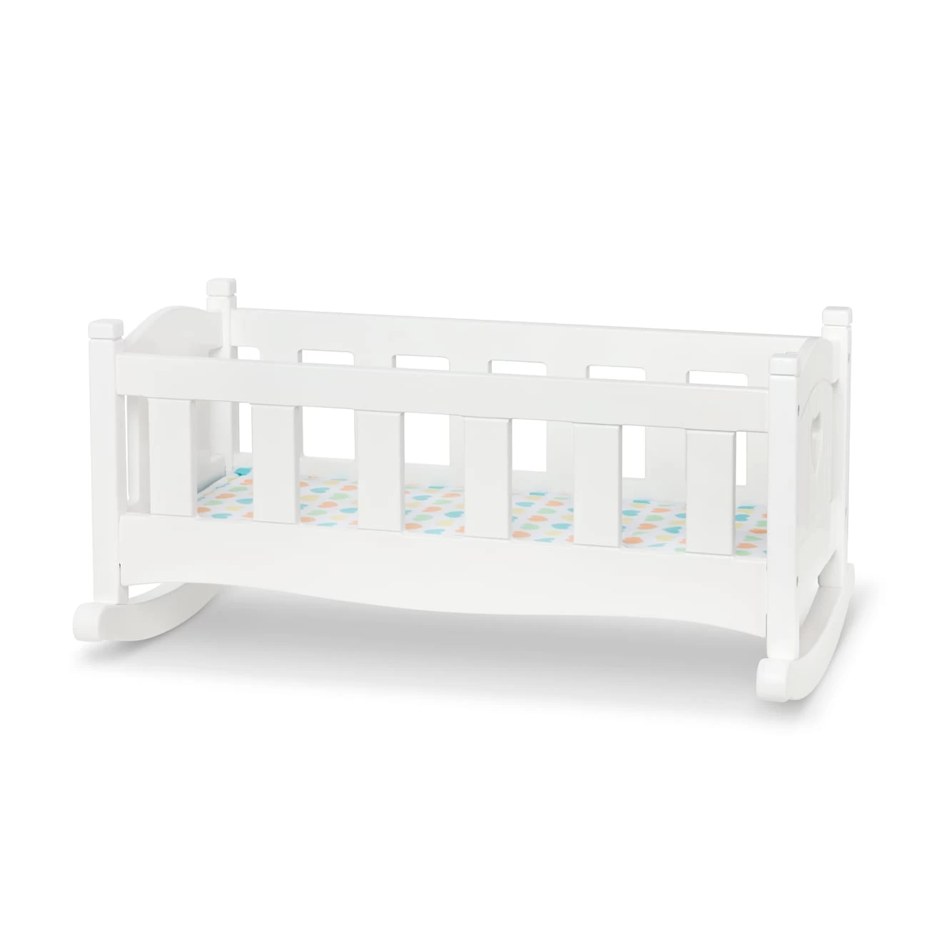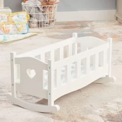 Rock to sleep favorite dolls and stuffed animals in this realistic and classically styled wooden cradle that suits any décor! Made to fit dolls up to 20 inches tall, the durable white rocking cradle with a wipe-clean surface stands approximately 10 inches tall. Clear instructions make the cradle easy to assemble with just a screwdriver (not included). Mine to Love® dolls and accessories encourage empathy and help kids express themselves as they explore grown-up roles and responsibilities. A child’s confidence and self-esteem blossom and grow with each nurturing moment of imaginative play!