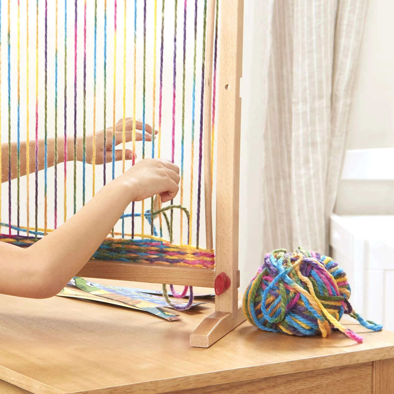 Youngsters will be thrilled to get creating with this Multi-Craft Weaving Loom. With its easy-to-use adjustable frame, oversize wooden needle and generous 91 yards of rainbow yarn, kids can choose to make a scarf, a tasseled coaster, a drawstring pouch, a crafty carry-all–or whatever they design themselves! Great for all skill levels, this loom also includes three picture tapestries to weave.