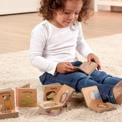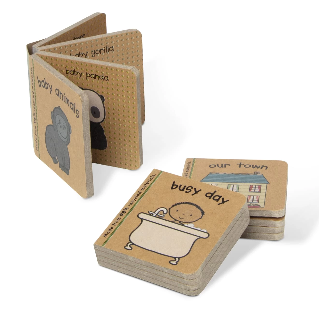 Give children the building blocks for reading with the Melissa & Doug Natural Play Book Towers. Ten chunky books, perfect for little fingers, feature essential early learning concepts. Read the books together, then use the books like building blocks, stacking and arranging them. The books come in an attractive box with a handle for easy portability and convenient storage. The Natural Play Book Towers use recycled materials and soy-based inks. Use this Natural Play Book Tower to engage in conversations with kids as they play. Object play with manipulatives such as these little block-like books helps develop hand-eye coordination and adds a tangible, physical component to kids’ learning!