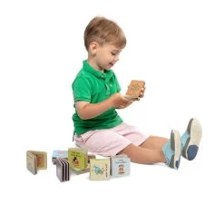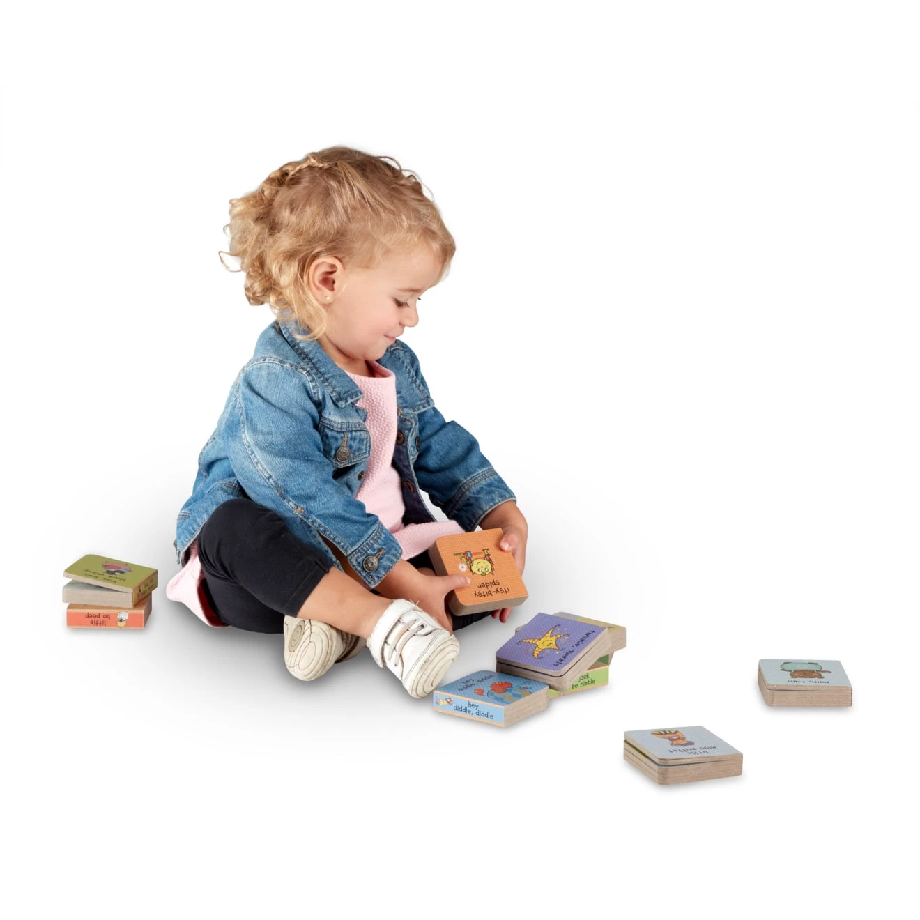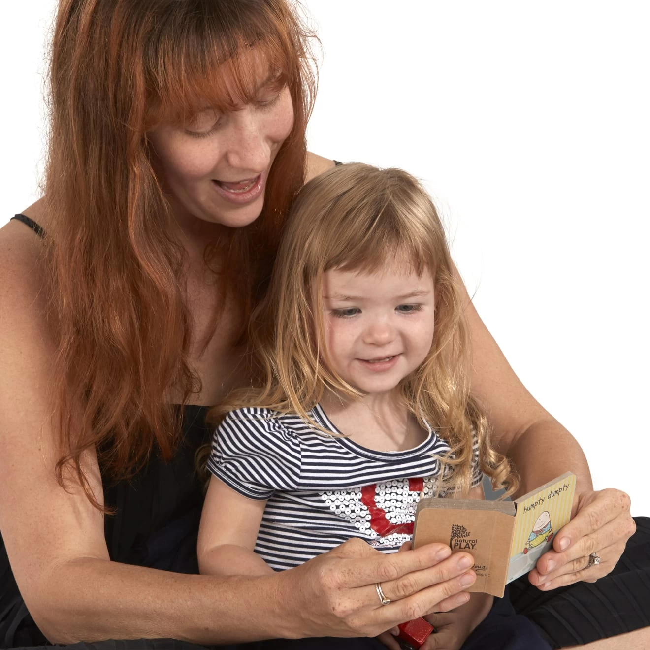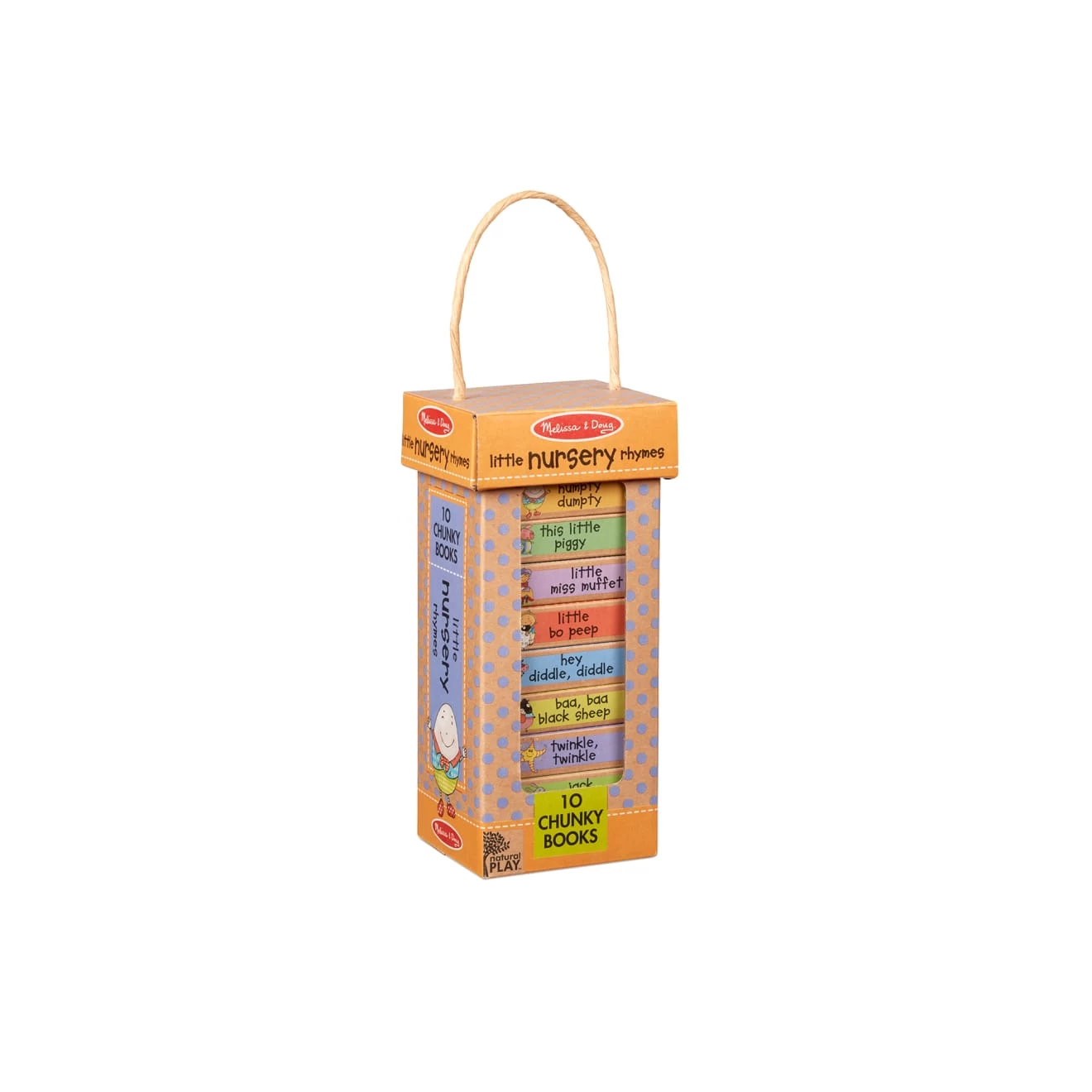 Give children the building blocks for reading with the Melissa & Doug Natural Play Book Towers. Ten chunky books, perfect for little fingers, feature favorite classic nursery rhymes. Read the rhymes together, then kids can use the books like building blocks, stacking and arranging them. The books come in an attractive box with a handle for easy portability and convenient storage. The Natural Play Book Towers use recycled materials and soy-based inks. Use this Natural Play Book Tower to engage in conversations with kids as they play. Object play with manipulatives such as these little block-like books helps develop hand-eye coordination and adds a tangible, physical component to kids’ learning!
