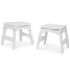 These two easy-to-assemble hardwood chairs have an 11-inch seat height that’s comfy for kids–plus durable solid-wood pieces and a reinforced, tip-resistant design that grown-ups can feel confident about, too. Add them to our Table & 2 Chairs Set to make room for a foursome, or use them on their own to create a child-friendly seating nook for two! Assemble with a Phillips-head screwdriver.
