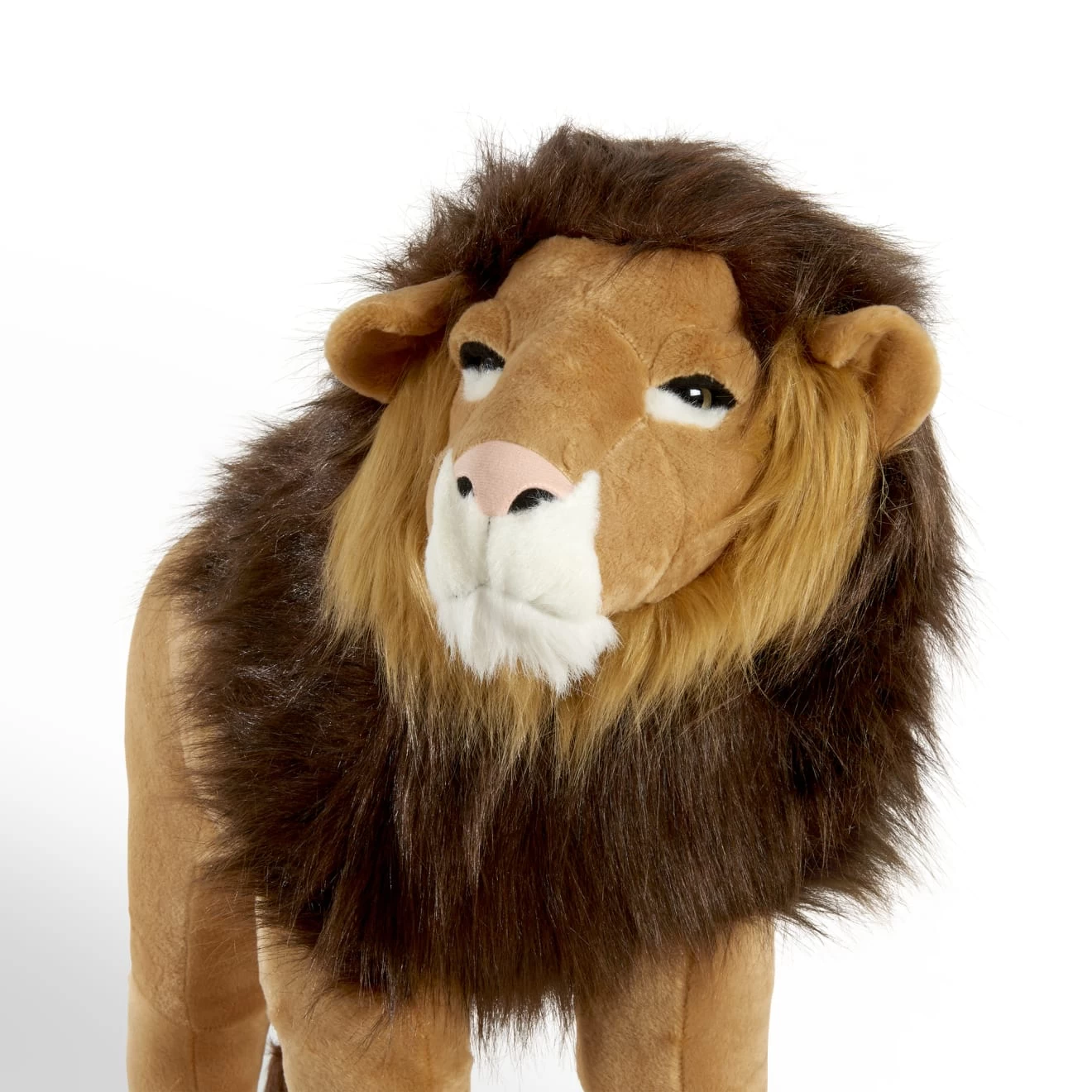 This most majestic creature will have kids of all ages roaring with pleasure! Standing more than two feet tall, the golden-brown male lion with a luxuriously soft two-tone mane is sure to be great companion to for big cat lovers, as well as a striking focal point in nurseries, bedrooms, or playrooms. Realistic details include a long, swishy tail, rounded ears, and a serene expression. The soft, squeezable body covered with super-soft fur encourages hugs, while quality construction and a strong interior structure keep this lion standing proudly for years to come.
