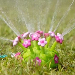 With the Pretty Petals Sprinkler, the flowers water you! This sweet and whimsical outdoor sprinkler features pretty pink flowers on a green base, all made from durable materials. It attaches easily to a hose for outdoor fun for the whole family, as well an adorable way to water the garden. The sprinkler encourages outdoor active play and helps develop coordination.