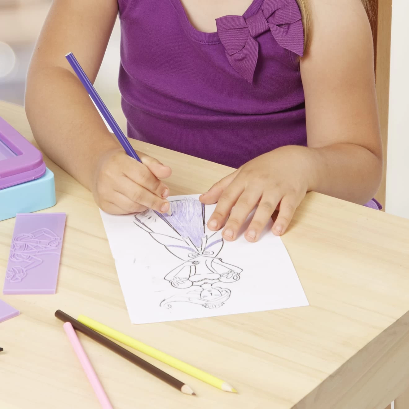 This princess-themed fashion-plate rubbing set lets design-inclined kids create a wardrobe full of regal fashions! Just line up the pieces of an original ensemble, lay a piece of paper over the top, rub with a design crayon and . . . voila! A royal look worthy of a princess.
