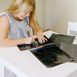 A perfect first Scratch Art experience! Simply scratch black-coated sheets with a wooden stylus (not included) to reveal brilliant colors. Spectacular results with no mess! Includes 50 sheets of 8.5 x 11″ paper.