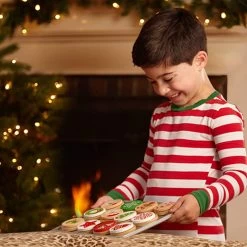 Slice and pretend to bake a dozen wooden cookies, then decorate them for Christmas! This colorful play-food set includes a tube of 12 sliceable cookies with 12 decorative toppings, an oven mitt, wooden cookie sheet, knife and spatula, plus pretend baking directions to encourage unlimited imaginative play and learning. It’s a festive way to reinforce basic skills, encourage creativity and celebrate the holidays!