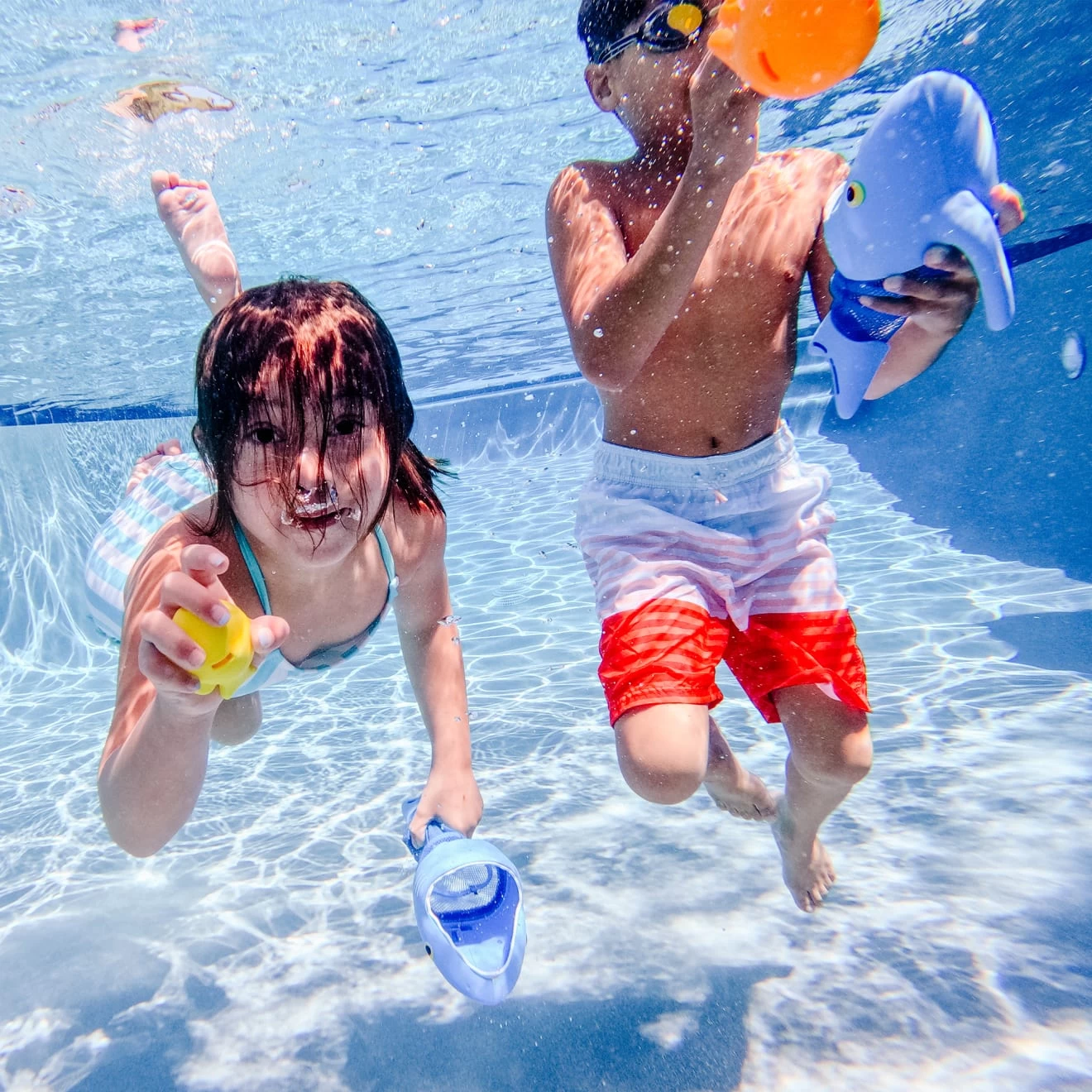 Speed like a hungry shark to gobble up tasty fish! Just grab onto the handle of a Spark Shark net and swim through the pool to scoop up the fishy sinkers. The set comes with two shark nets, six colorful sinkers and lots of play ideas for races, games and more!