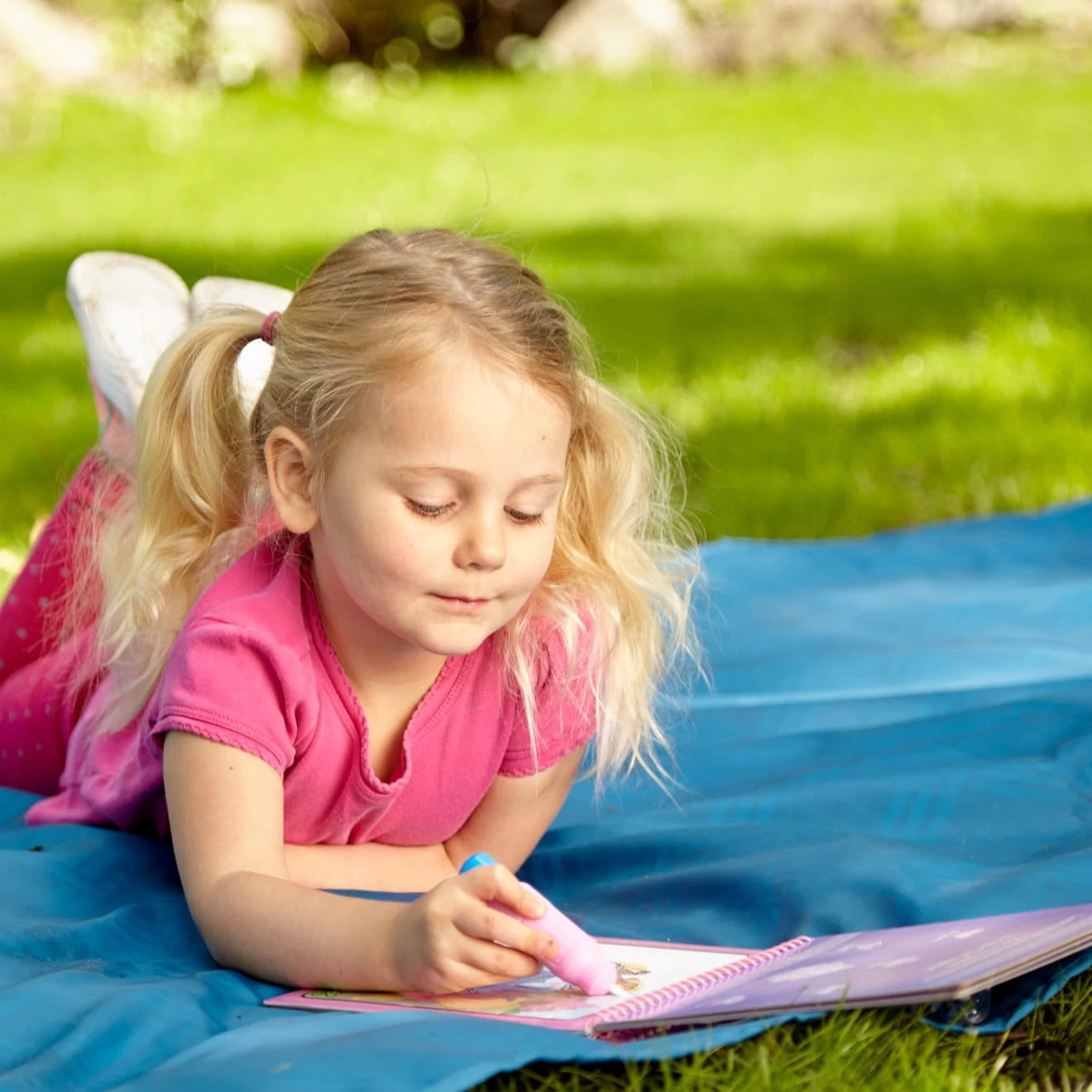 No-mess painting for kids! Each book in this exciting paint-with-water coloring book set includes four reusable pages and a refillable water pen. Simply use the pen to color in each scene–details and vibrant color appear with every stroke! Then let the page dry to erase the pictures and color it in again and again. The chunky-sized water pen is easy for kids to hold and stores neatly right in the front cover, making Water Wow! an ideal travel activity book and travel toy for kids.