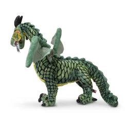 Let imaginations take flight with this fantastic and dramatic winged dragon! With a wingspan stretching nearly four feet wide and measuring almost four-and-a half feet from forked-tongued snout to the tip of its powerful tail, this impressive green-scaled dragon with vinyl talons and horns will spark the imagination, promote creative play, and is sure to be a beloved prehistoric pal.