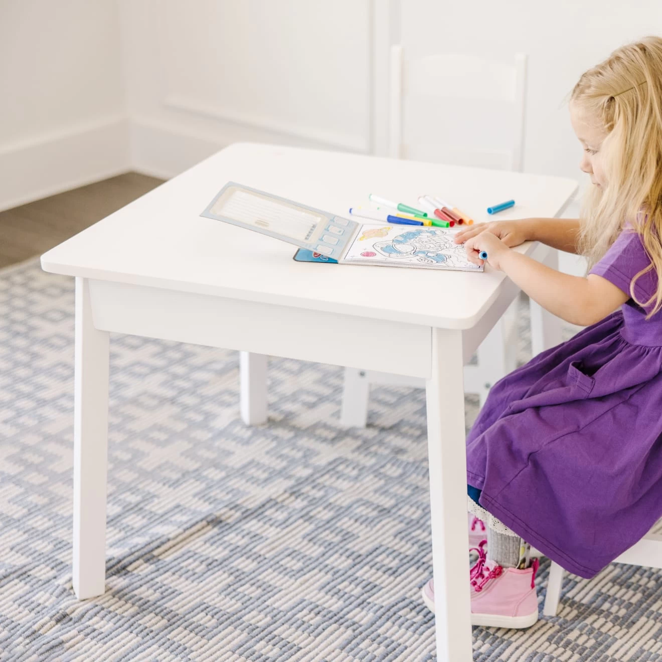 Give kids their own spot for puzzles, games, snacks, drawing, and more with this sturdy and beautifully designed wooden table, sized just for kids. Available in natural (light woodgrain), bright white, or two-tone (natural tabletop with white legs), theres a look to fit any home decor. The wipe-clean table is easy to assemble with just a Phillips head screwdriver (not included; power tools not recommended), and pairs perfectly with the Melissa & Doug Wooden Flared Chair Pair.