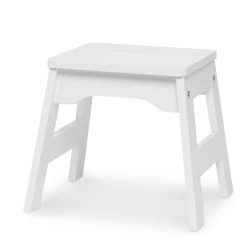 Make a cozy seating spot for two! This set of two sturdy wooden stools is perfect for use around an activity or play table and makes a great addition to any kids play space. Available in white, natural (light woodgrain), and two-tone white and natural, the pair of 11-inch-high stools wipes clean with just a damp cloth and fits any home decor. A cutout handle in the seat makes these easy to carry from room to room, and they are designed to stack for convenient storage. Stools are sized for kids three to eight years old, up to 100 pounds.